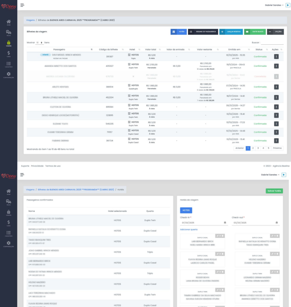 Cada viagem na modalidade pacote tem sua lista de passageiros. Para cada passageiro confirmado, é atribuído um bilhete.